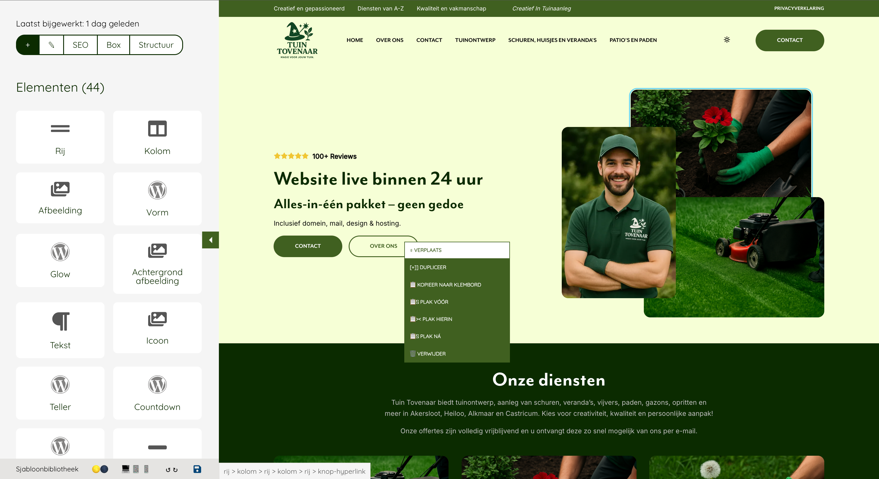 We perform manual checks to make sure that everything is right before we put your website on your own domain name. Should you want to change something after launch, then that would be no problem. With our user-friendly builder you can easily change texts, images or layouts. This way you rule over your website without depending on a webdeveloper. Read more about the page builder below.